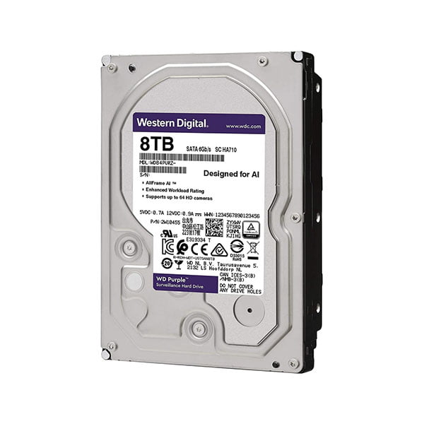 هارد 8 ترا اصلی مدل «WD80PURZ» در خانوادهی بنفش (Purple) سازنده جای میگیرد و برای استفاده از سیستمهای حفاظتی ساخته شده است.